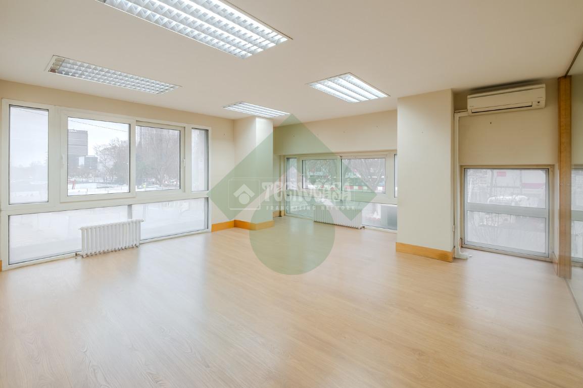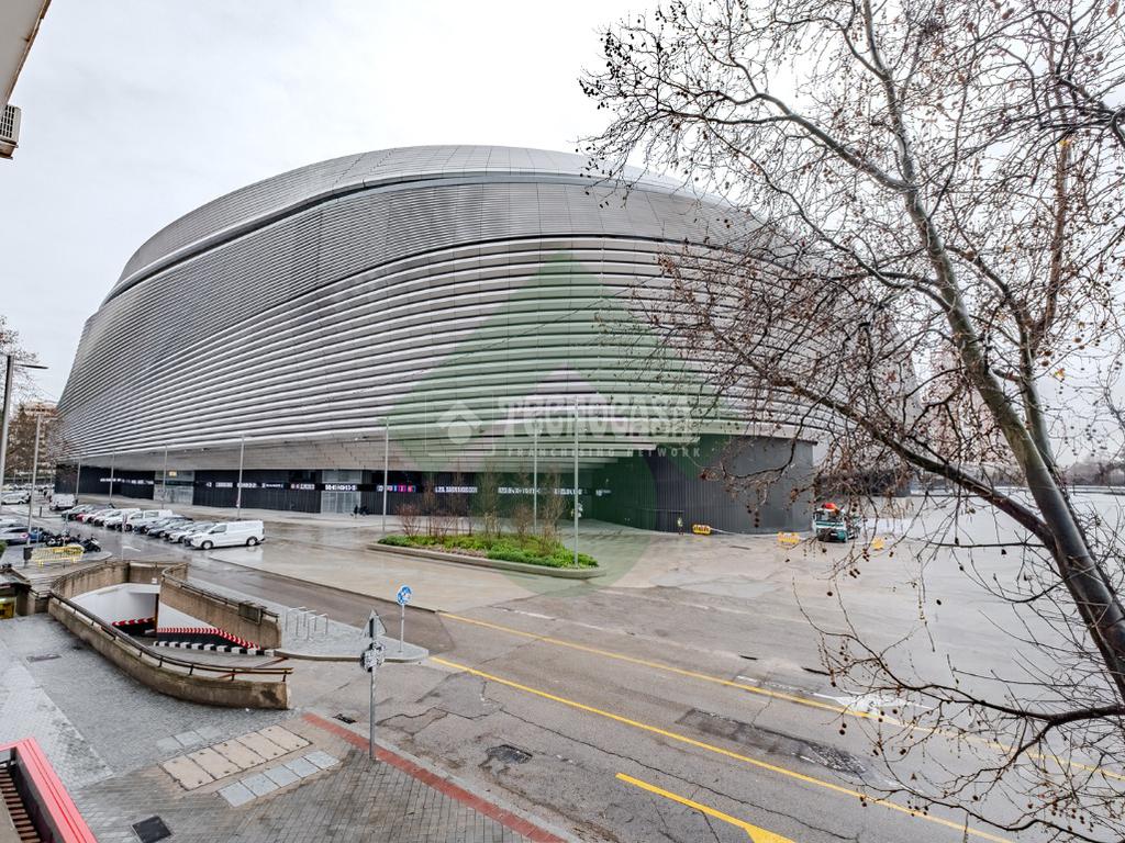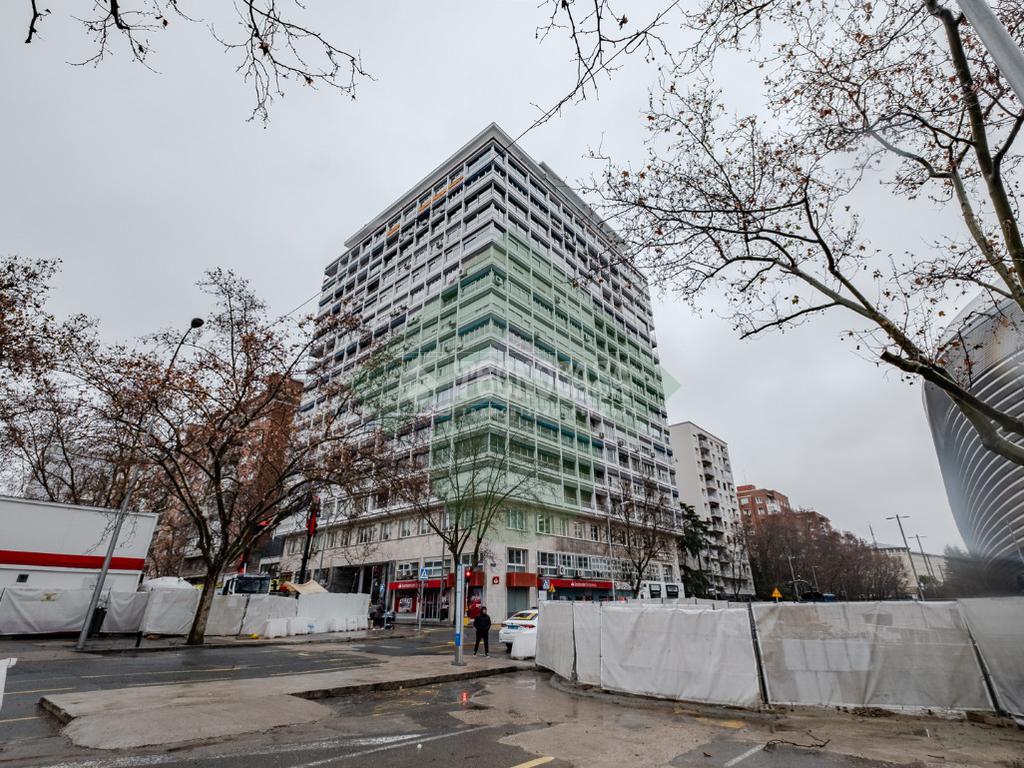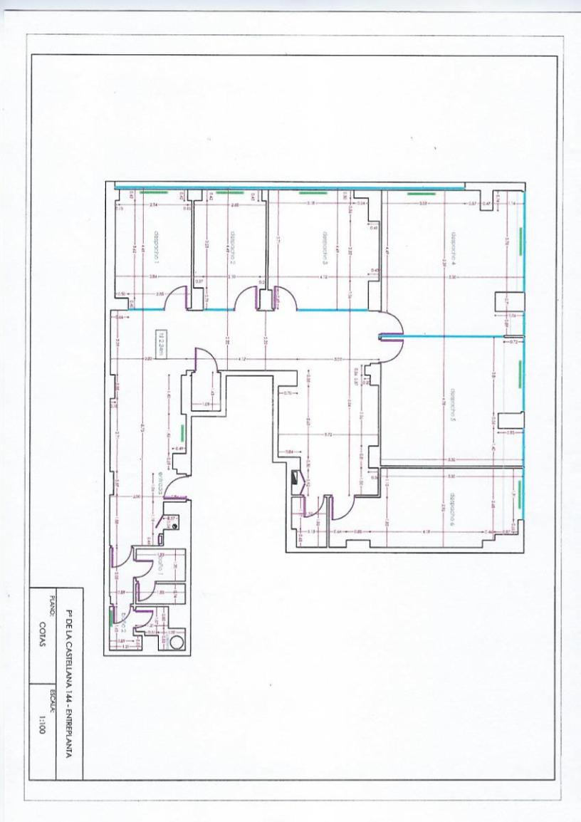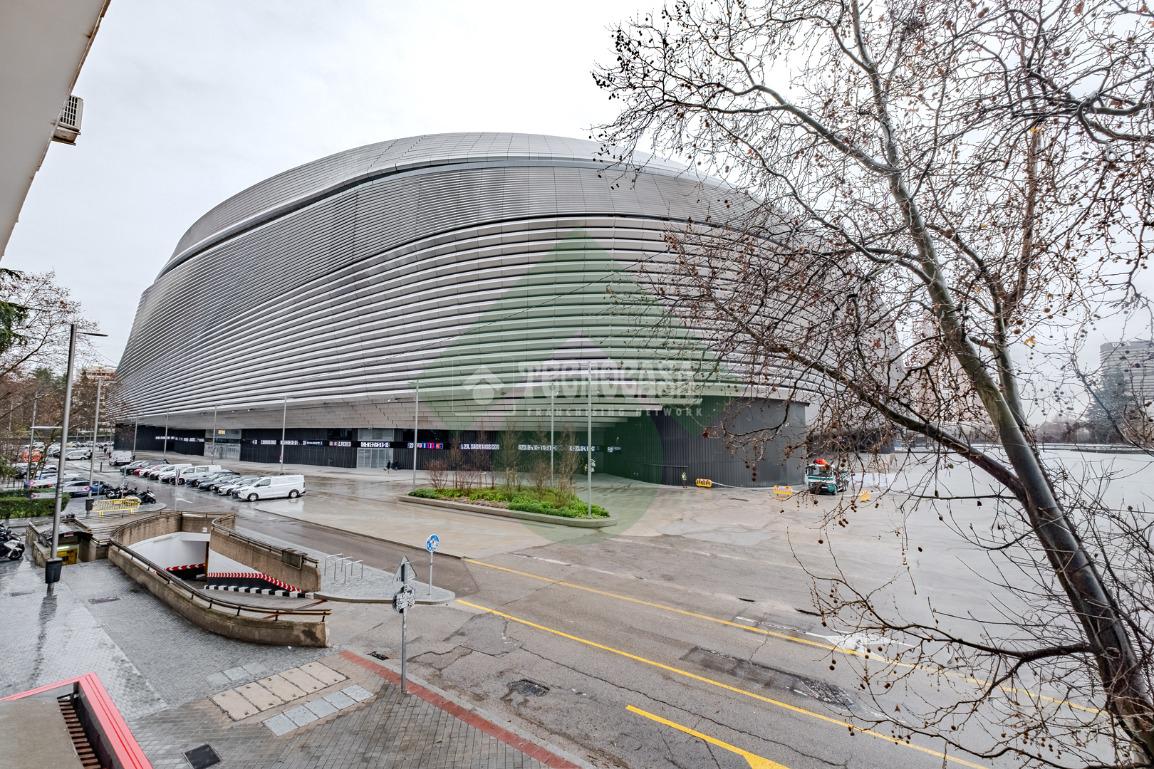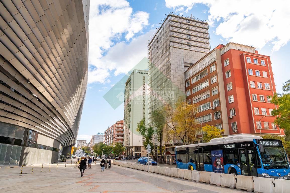 Se alquila magnífica oficina en zona muy comercial, en primera línea con vistas directas al Estadio Santiago Bernabéu. Dispone de 200m2 en Paseo de la Castellana, frente al estadio Santiago Bernabéu con posibilidad de 2 plazas de garaje en la finca. La oficina dispone de 6 despachos, 2 aseos y amplias zonas comunes totalmente exteriores con mucha luz natural (Ver plano adjunto). Ventanas climalit, calefacción por radiadores, aparatos de aire acondicionado, puerta de seguridad, habitación almacén, office,.. . Conserje en finca y cámaras de seguridad. Las propias ventanas de la oficina son el escaparate perfecto para anunciar su negocio frente al tráfico incesante de Paseo de la Castellana y del propio Santiago Bernabéu.